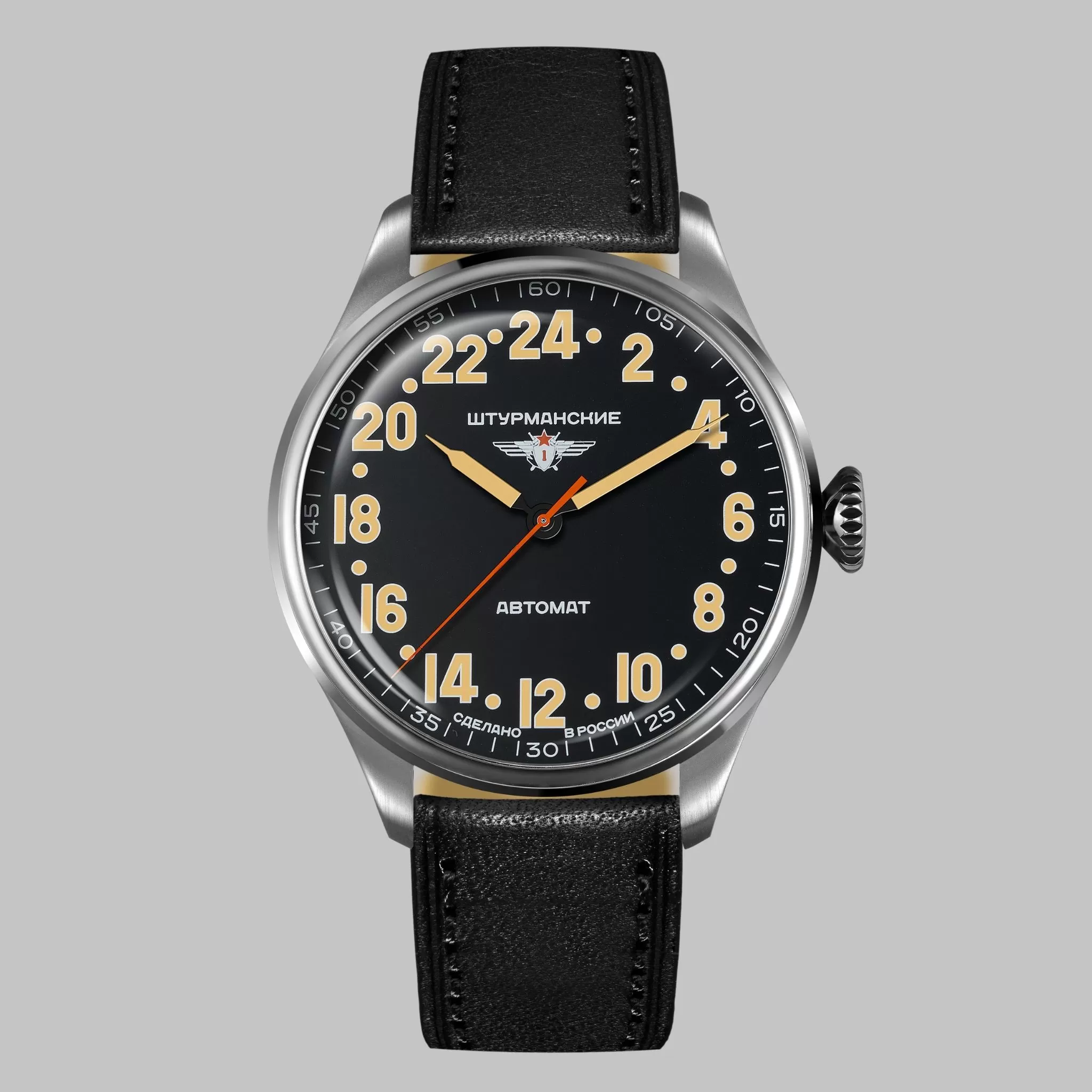 For more than 60 years, watches from the Arctic Heritage collection have been constant companions of Russian polar explorers and travellers. Their reliability has been confirmed by the most severe trials and in the most challenging conditions. Today, we have made a reissue of this legendary product range available to you. A functional and stylish watch with a black leather strap, a steel case and luminous numbers, it features a 24-hour dial with hour, minute and seconds hands. A durable acrylic crystal reliably protects the watch face and at the same time makes the timepiece lighter. The Russian-made Vostok 2431 movement is shockproof. Automatic winding provides a power reserve that will last for 31 hours when fully wound, while the daily deviation does not exceed -20/+60 seconds.Technical data