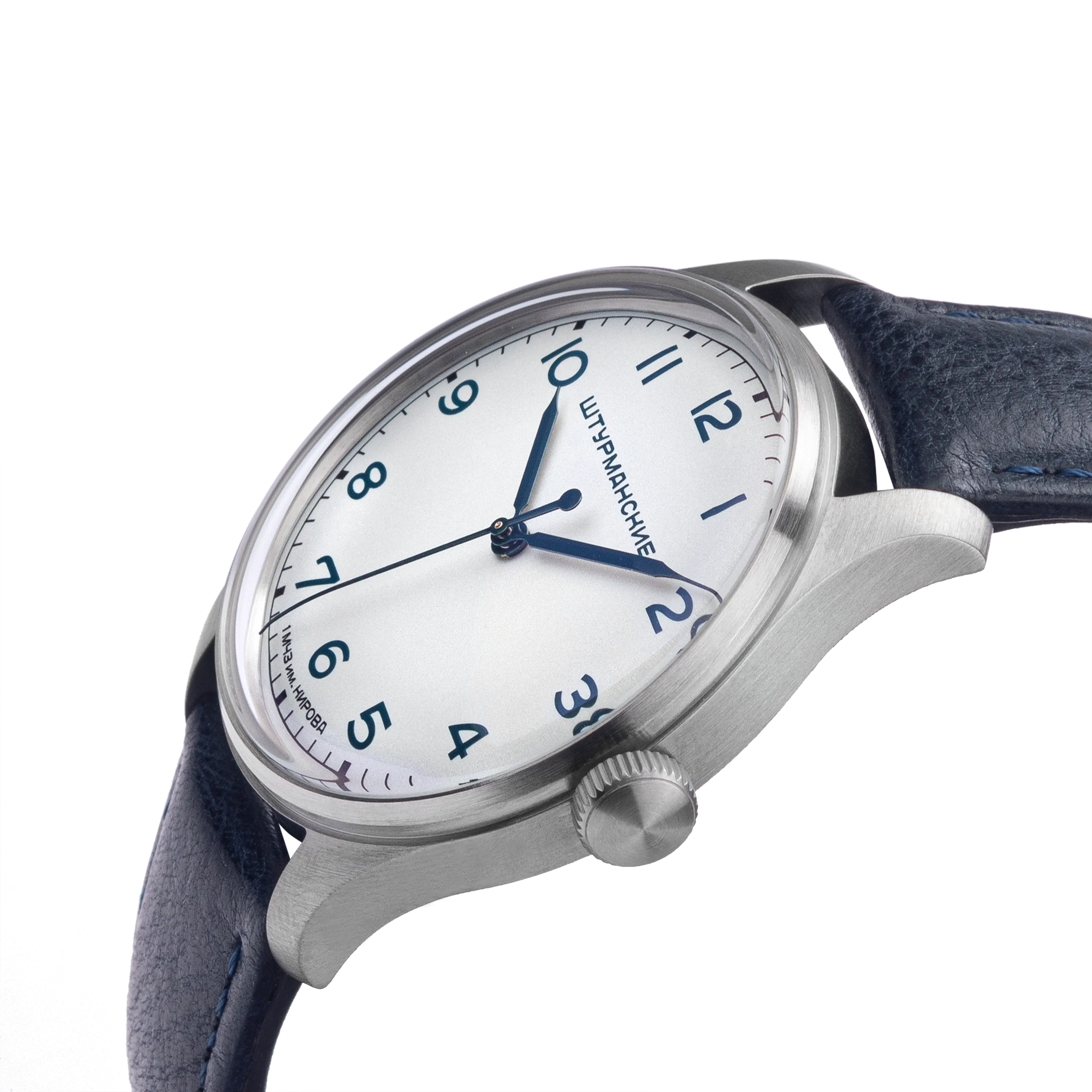 Simple in design, but incredibly reliable and convenient watches, created under the inspiration of the legendary Sturmanskie by Yuri Gagarin, are available to you today. Introducing the Gagarin Heritage Classic 40 collection. This watch will become your invariable companion for many years. You don't have to worry that they will go out of fashion – time has no power over their simple design. The round steel-colored case is complemented by a blue leather strap with solid stitching. Dark blue indexes and hands look perfect on a light gray dial, and they glow in the dark. The watch is protected from the front by a mineral spherical glass. An individual model number is applied to the back of the case, which emphasizes its uniqueness. As a working mechanism in the watch, the original caliber of domestic production Polyot 2609 with manual winding is used.Technical data
