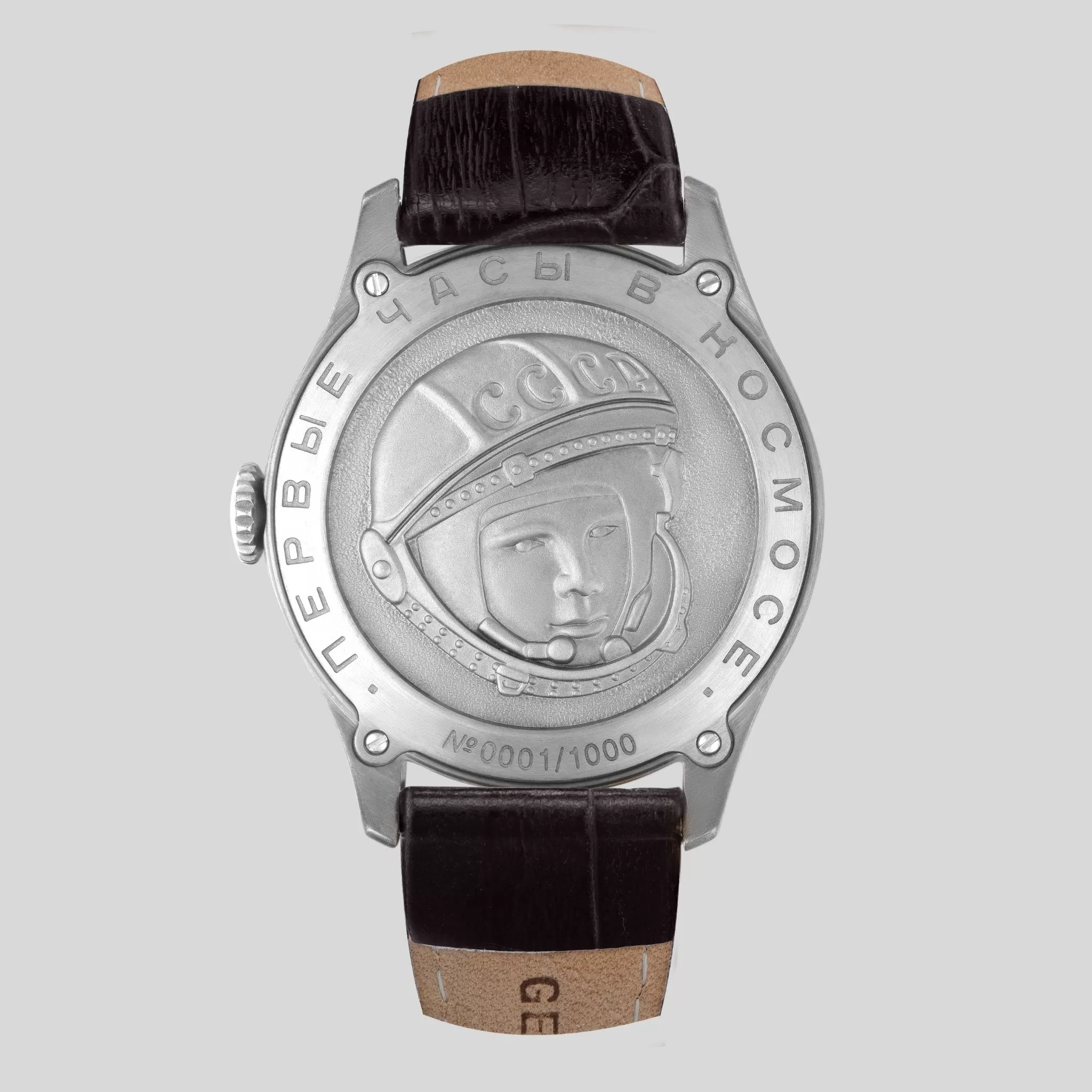 On 12 April 1961, a Sturmanskie watch accompanied Yuri Gagarin on the first manned flight into space. To commemorate that momentous event, we now present the limited edition Gagarin Heritage collection – a range of watches worthy of the great hero. This watch was created to become a constant feature of your personal style. It has several striking and original details: a gray gradient watch face under a convex crystal, a dark brown leather strap with contrasting bright stitching, and an engraved image of the first cosmonaut on the back. The luminous numbers and hands tell the time in any light setting. The titanium case conceals a self-winding mechanical shockproof Poljot 2609 calibre. When fully wound, it runs for up to 38 hours without fail.Technical data