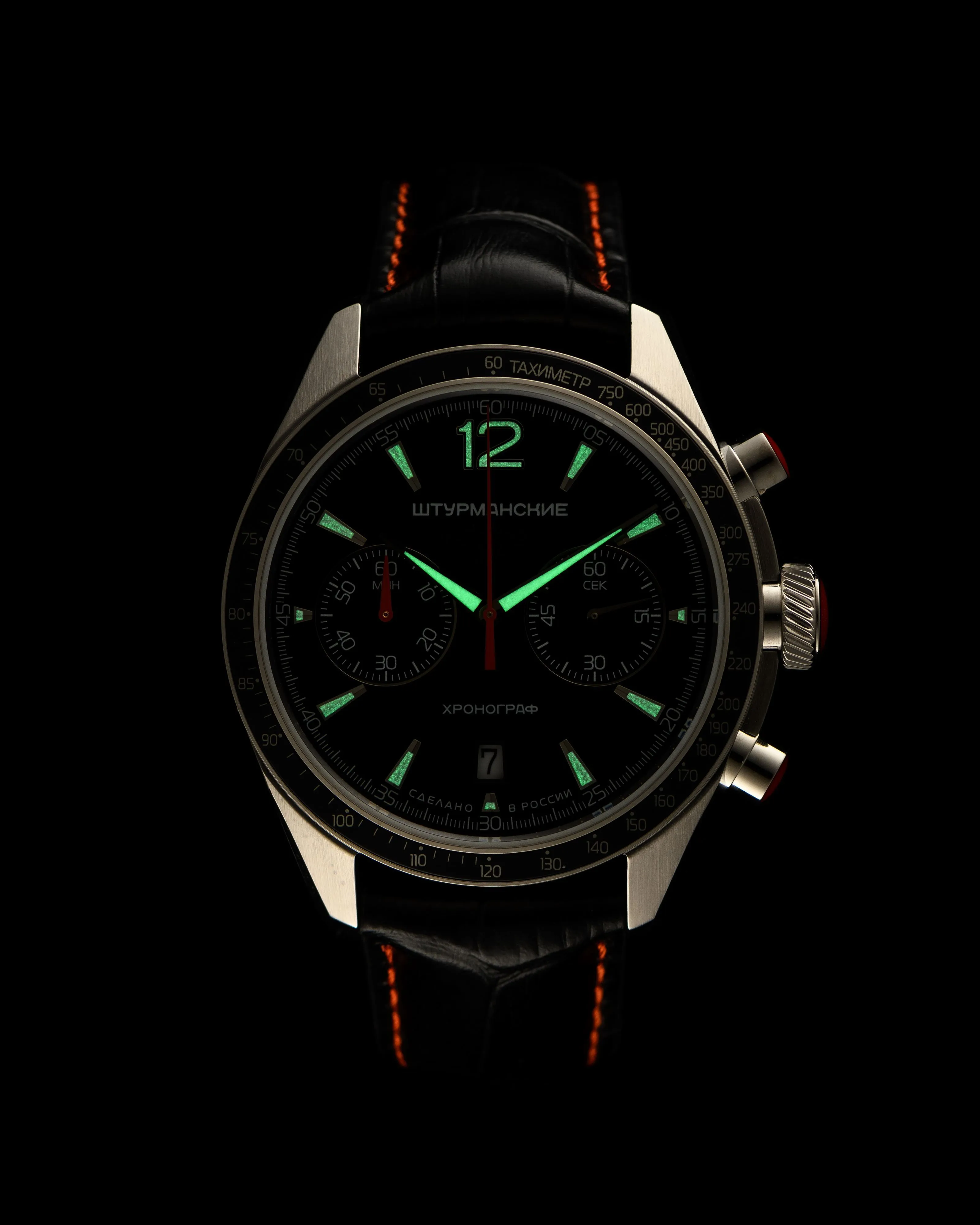 The Shturmanskie watch from the Luna 25 collection is a unique accessory created for true connoisseurs of high-quality and stylish watches. The model embodies a combination of elegant design and reliable functionality. The watch case is made of stainless steel, ensuring durability and resistance to external influences. Mineral glass protects the dial from scratches and damage, maintaining its flawless appearance for a long time. The classic-style clock hands have a luminescent coating, which makes it easy to read the time in low light conditions. The watch is equipped with a Miyota 6S21 quartz movement, which guarantees high precision and long service life. Additionally, the model has a chronograph function, which makes it even more functional. Water resistance up to 5 ATM means you don't have to worry about your watch coming into contact with water, be it rain or accidental submersion. Luna 25 is the perfect combination of sophistication and functionality for those who value time.